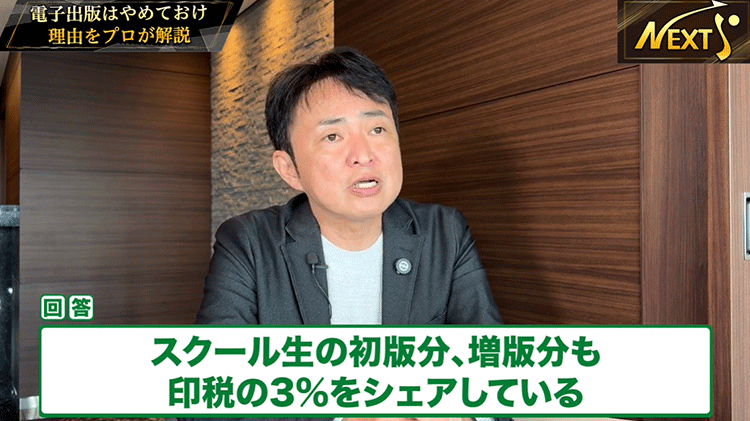 スクール生の初版分、増版分も印税の3%をシェアしている。