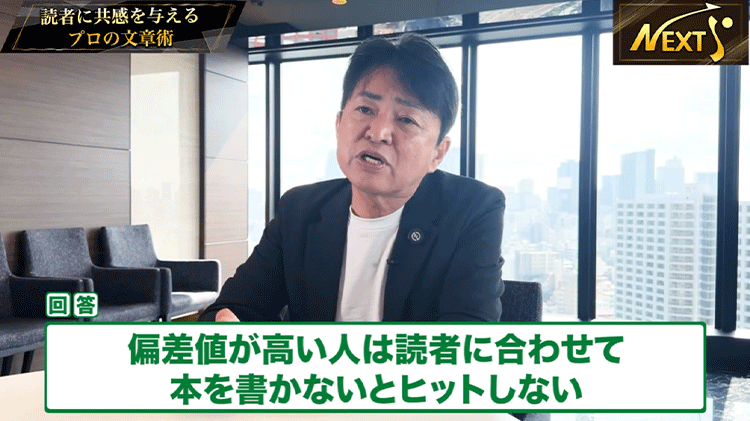 偏差値70とか65以上ある人は50に近づけてどんどん落としていかないとベストセラーには絶対なりません。