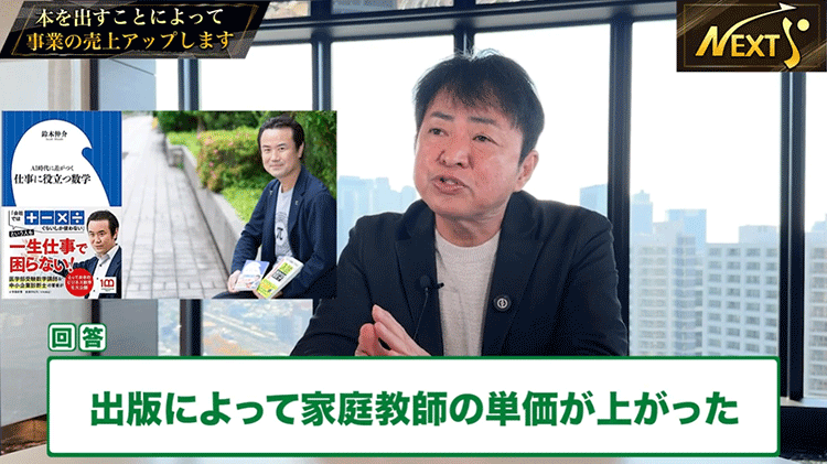 最初は細々とやっていましたが出版をしてブランディングが上がり家庭教師の単価が上がりました。